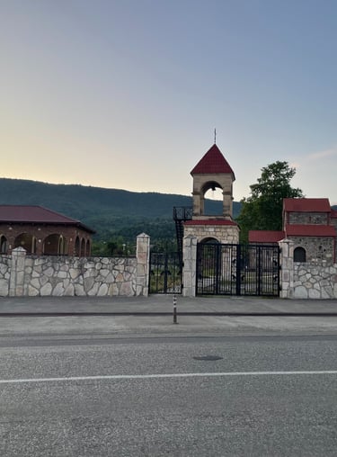 The restaurant is located in the park of the Dadiani Palace, next to the Cathedral named after the Icon of Holy Mother of God of Vlakern, Zugdidi. It is paved with our decorative stones.